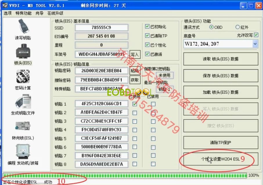 After above steps, all EIS and ESL status checkboxes will be tick except the “Activated” checkbox. Insert the original car key hen EIS and ESL is activated. Now you use VVDI MB tool to renew ESL successfully.