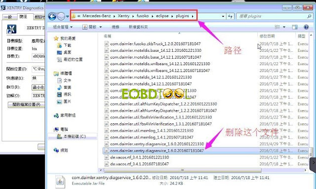 Then delete the specified file begin with “com.daimler.xentry.diagservice_1.6.0.201607....”