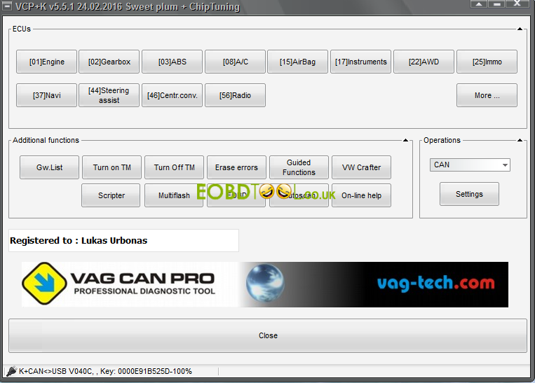 This is from EOBDTOOL website technical support: What About OBDSTAR VAG Pro Functions?