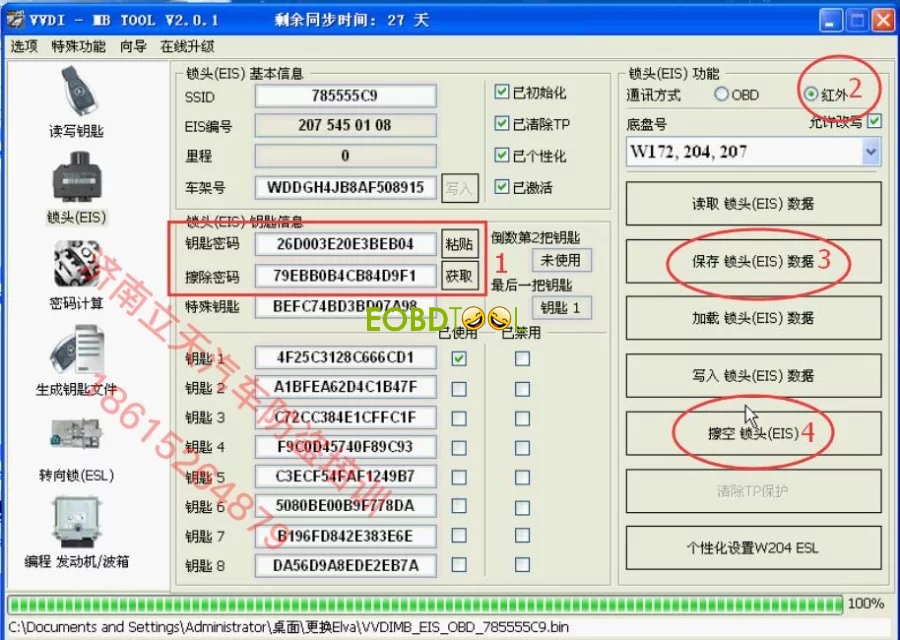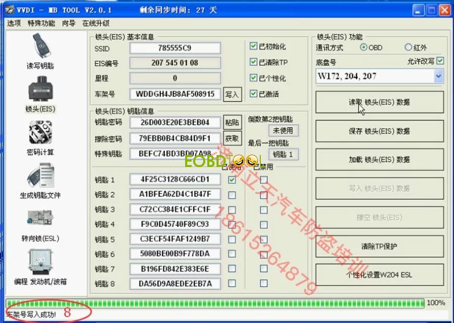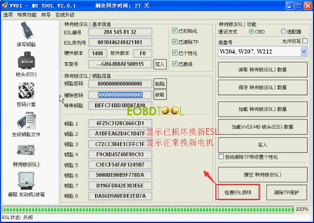After above steps, all EIS and ESL status checkboxes will be tick except the “Activated” checkbox. Insert the original car key hen EIS and ESL is activated. Now you use VVDI MB tool to renew ESL successfully.