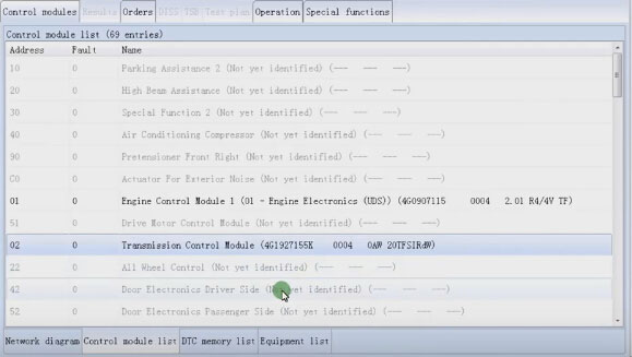 This is a test result of VAS 5054A ODIS 3.0.3 diagnosis on 2012 Audi a6 sedan.