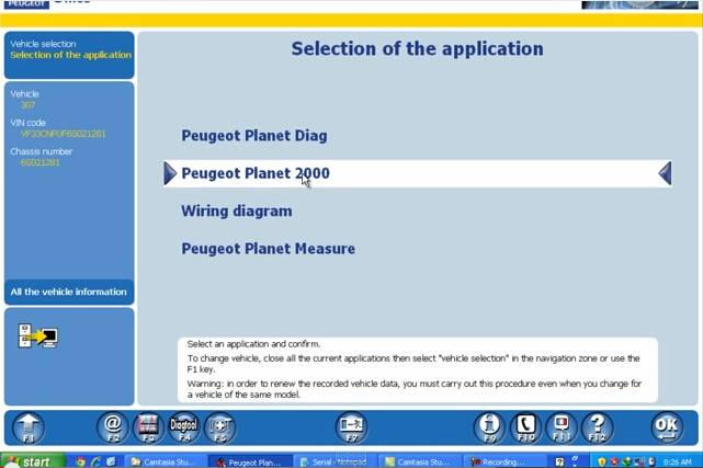 4. Select the application as Peugeot Plant 2000 and confirm it
