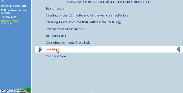 8. Select Learning option under Carry out the tests menu display
