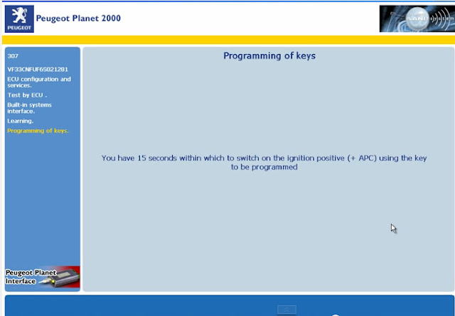 This is from obd tool website technical support: DIY Program Peugeot new key with Lexia 3 Peugeot Planet 2000